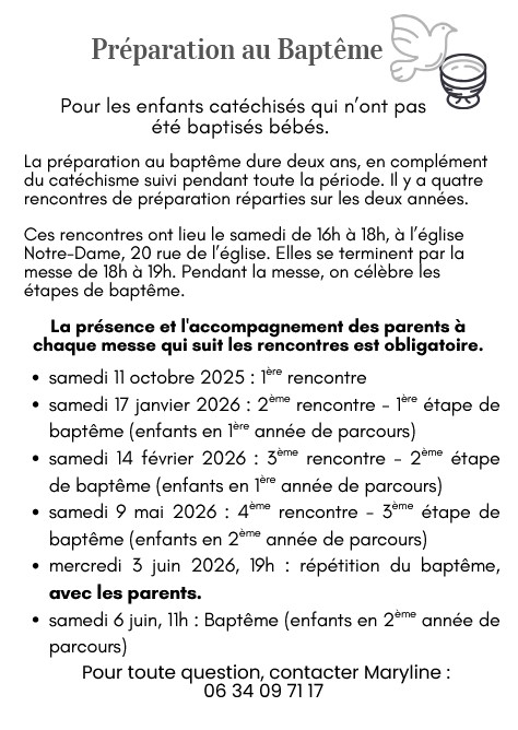 PREPARATION AU BAPTEME : toutes les dates des rencontres